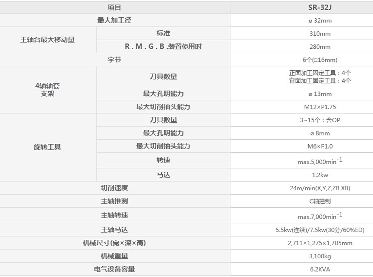 主軸モーター 7.5kw(連続)/11.0kw(10分/25%ED)