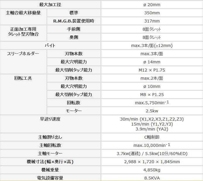 回転数 max.5,750min-1 早送り速度 30m/min (X1,X2,X3,Z1,Z2,Z3) 15m/min (Y1,Y2,Y3)